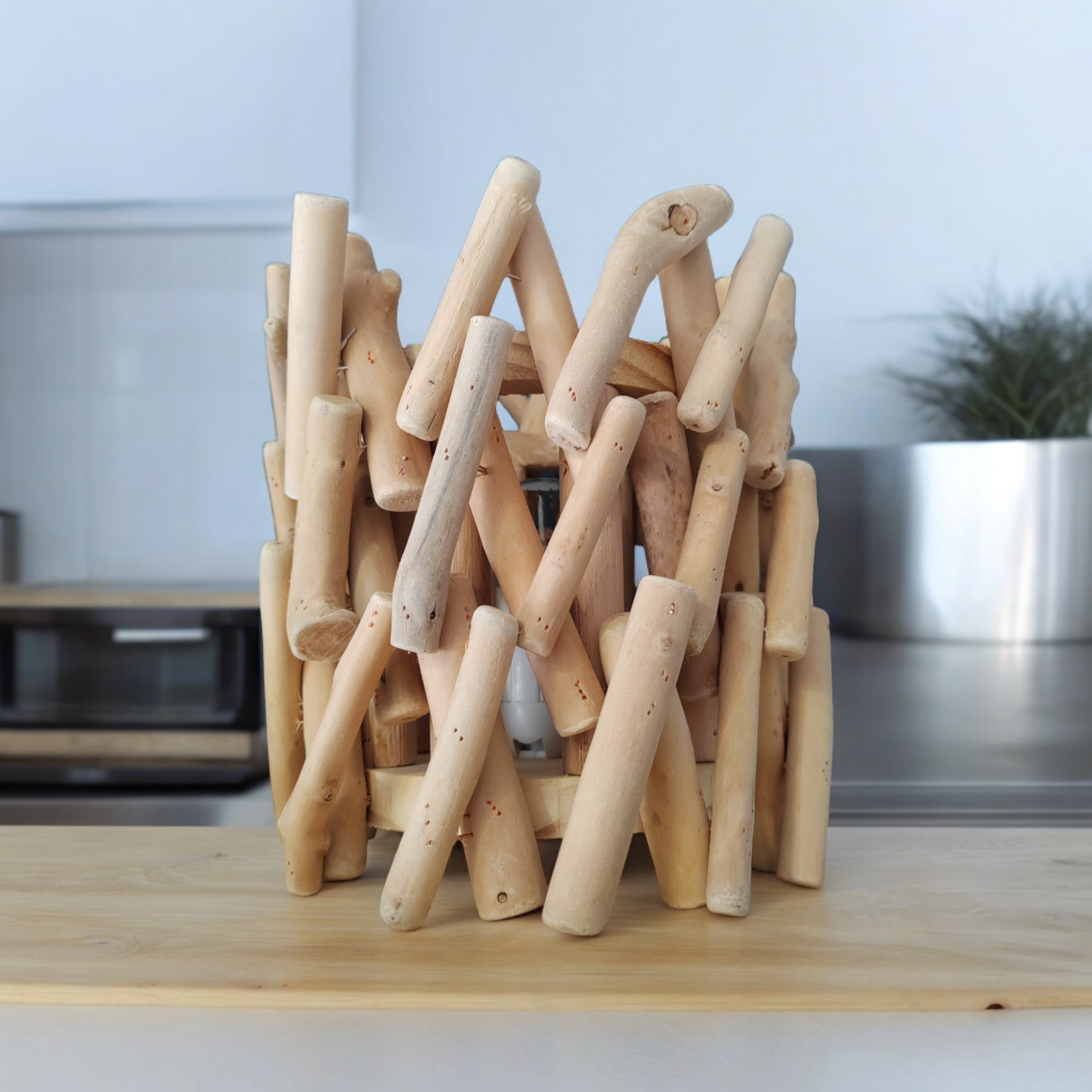 Création en bois, fabrication artisanale, tous les tiges sont fixées à la main! Une fois allumé, une lumière chaleureuse s'échappe et vous offre une sensation de cocooning. Vous serez fasciné par son style brut et naturel. Le senteur diffusé vous envoûtera et parfumera délicatement votre intérieur.