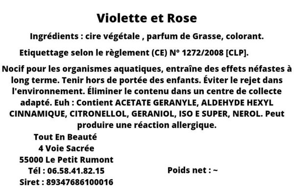 Bougie senteur Violette et Rose.