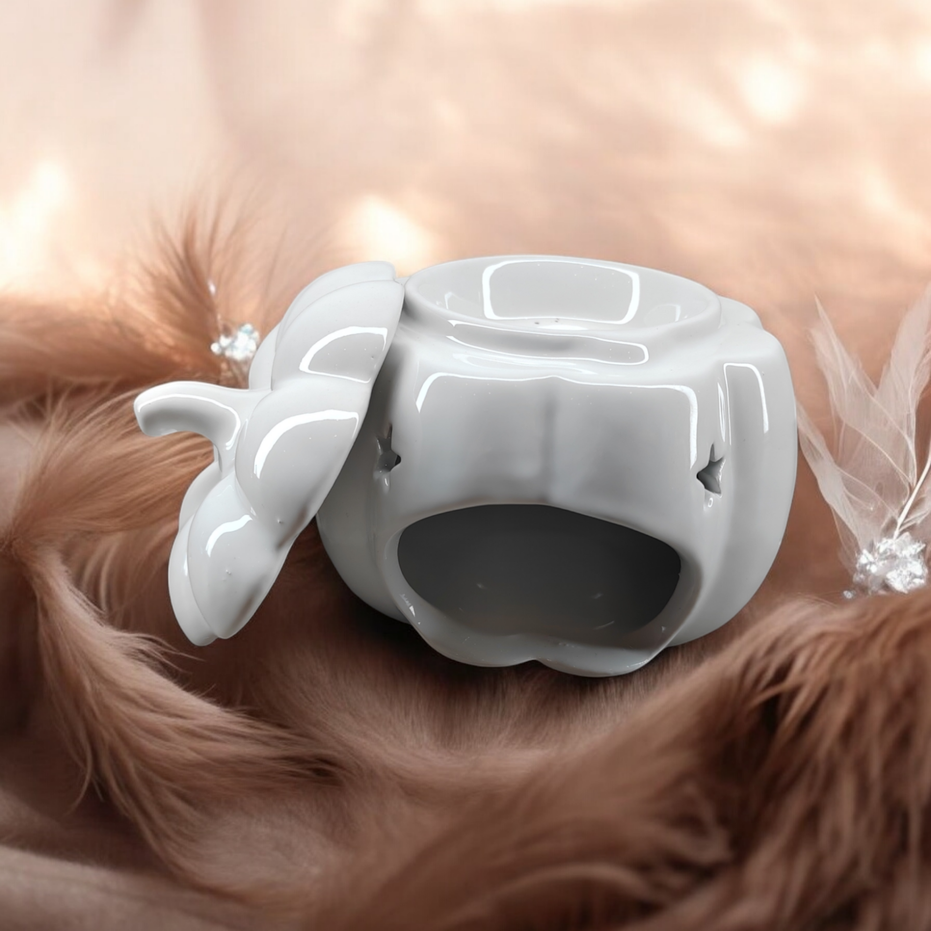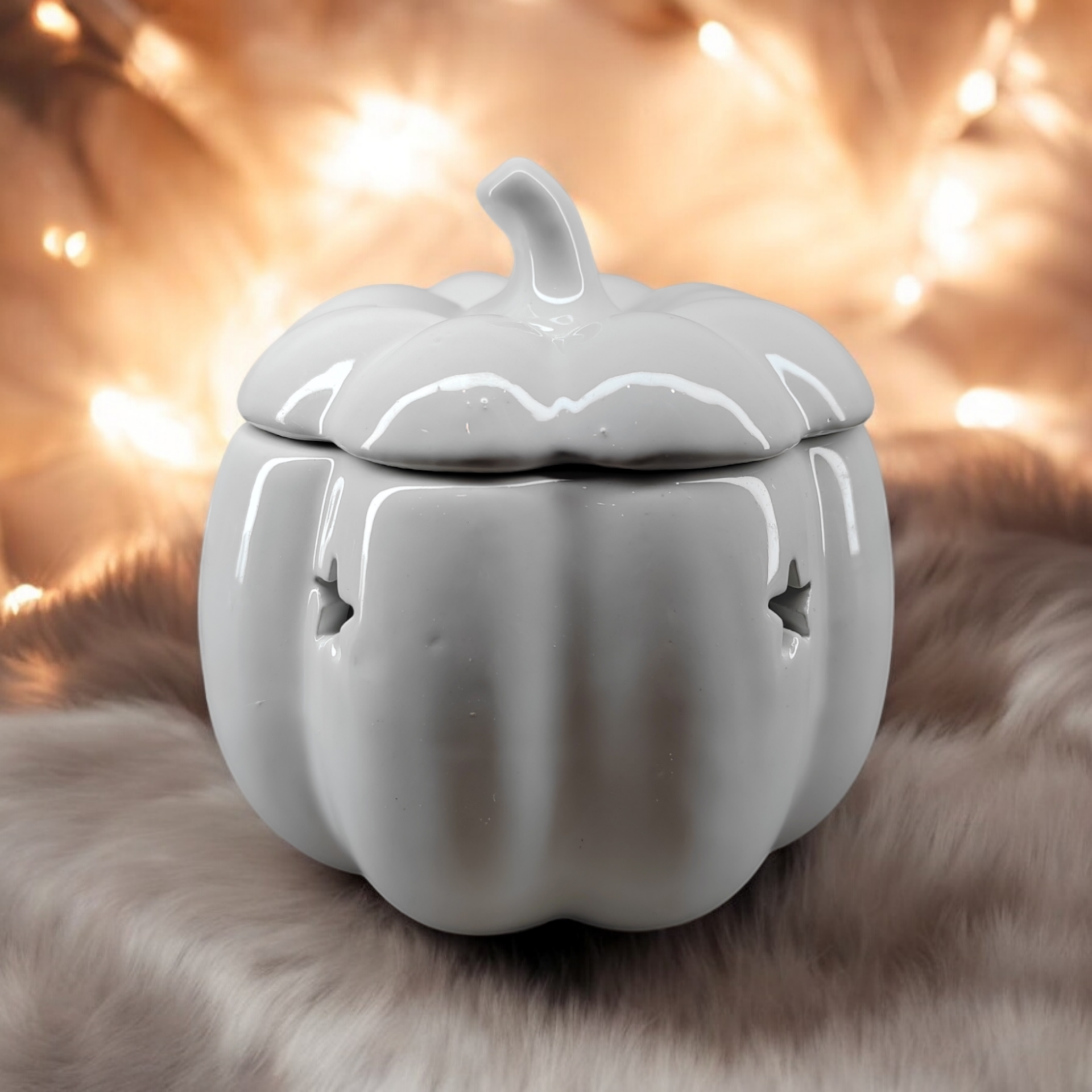 Créez l'ambiance de cette saison d'Halloween avec un brûle parfum Jack-O'-Lantern en céramique souriant. Il suffit de placer une bougie chauffe-plat allumée à l'intérieur, de retirer le couvercle et d'ajouter un fondant parfumé automnal. Retirez toujours le couvercle pendant l'utilisation.