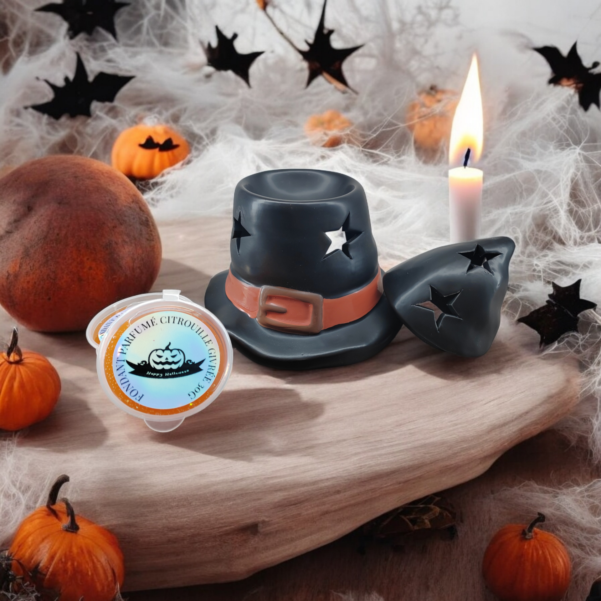 Ce brûleur unique est le complément parfait à tout décor effrayant. En forme de chapeau de sorcière classique, il créera une ambiance magique en remplissant la maison d'un parfum envoûtant et d'une chaude lueur étoilée. Recommandé pour une utilisation avec Les fondants parfumés ou Les Jelly parfumés N'utilisez pas plus d'une bougie chauffe-plat et retirez le couvercle en cours d'utilisation.