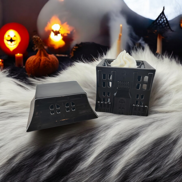 Profitez de « l'esprit » d'Halloween tout au long de l'année avec ce brûleur pour maison hantée d'une élégance effrayante. Lorsqu'un photophore allumé est placé à l'intérieur, la flamme vacillante projette des ombres étranges, créant une atmosphère envoûtante. Une pièce idéale pour ceux qui apprécient le style non conventionnel et la décoration gothique. Recommandé pour une utilisation avec Les fondants parfumés. N'utilisez pas plus d'une bougie chauffe-plat et retirez le couvercle en cours d'utilisation.
