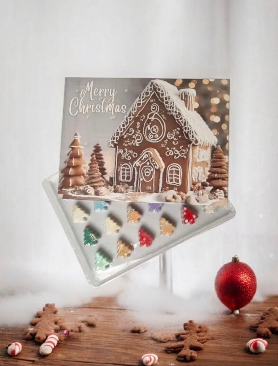 Réserver dès à présent votre calendrier de l'avent avec 24 fondants en forme de sapin parfumes aux douces senteurs d'hiver et de Noël.