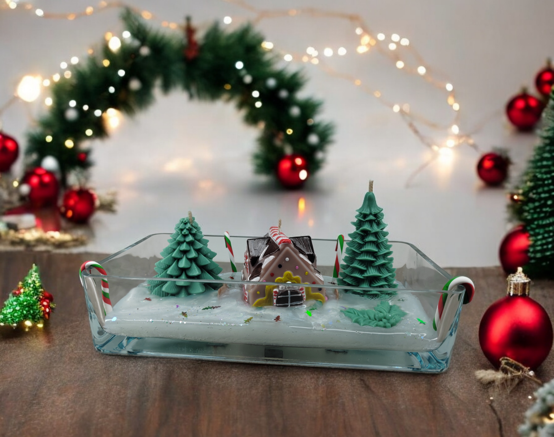 Bougie centre de table village de Noël