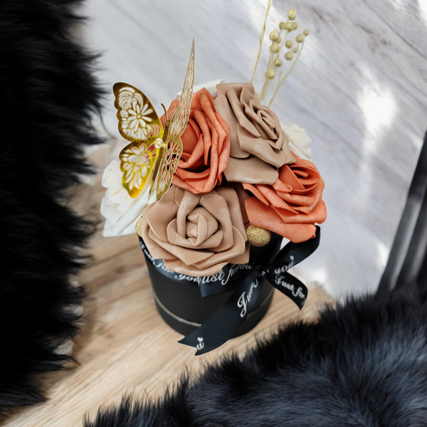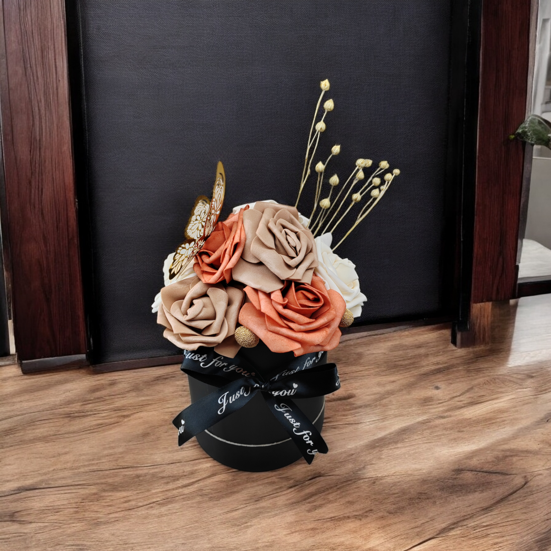 Découvrez une superbe sélection de roses en mousse au toucher réaliste, soigneusement arrangées dans une boîte noire chic, agrémentée d'un ruban assorti. Une pièce raffinée et intemporelle, idéale pour sublimer vos espaces. 💫