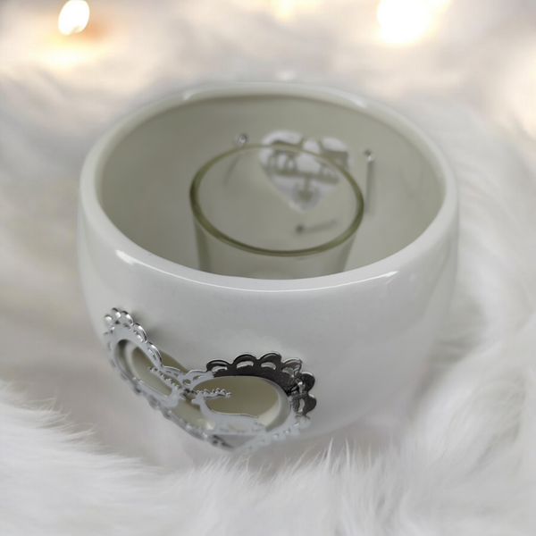 Globe photophore Renne argenté en céramique.