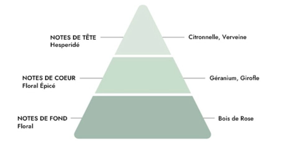Les notes de géranium et de citronnelle repoussent naturellement les insectes, idéal pour les soirées en plein air.