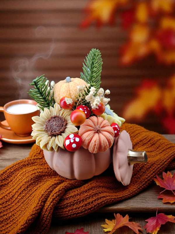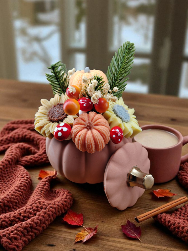 Pot citrouille réutilisable, réalisé dans notre atelier en Jesmonite.