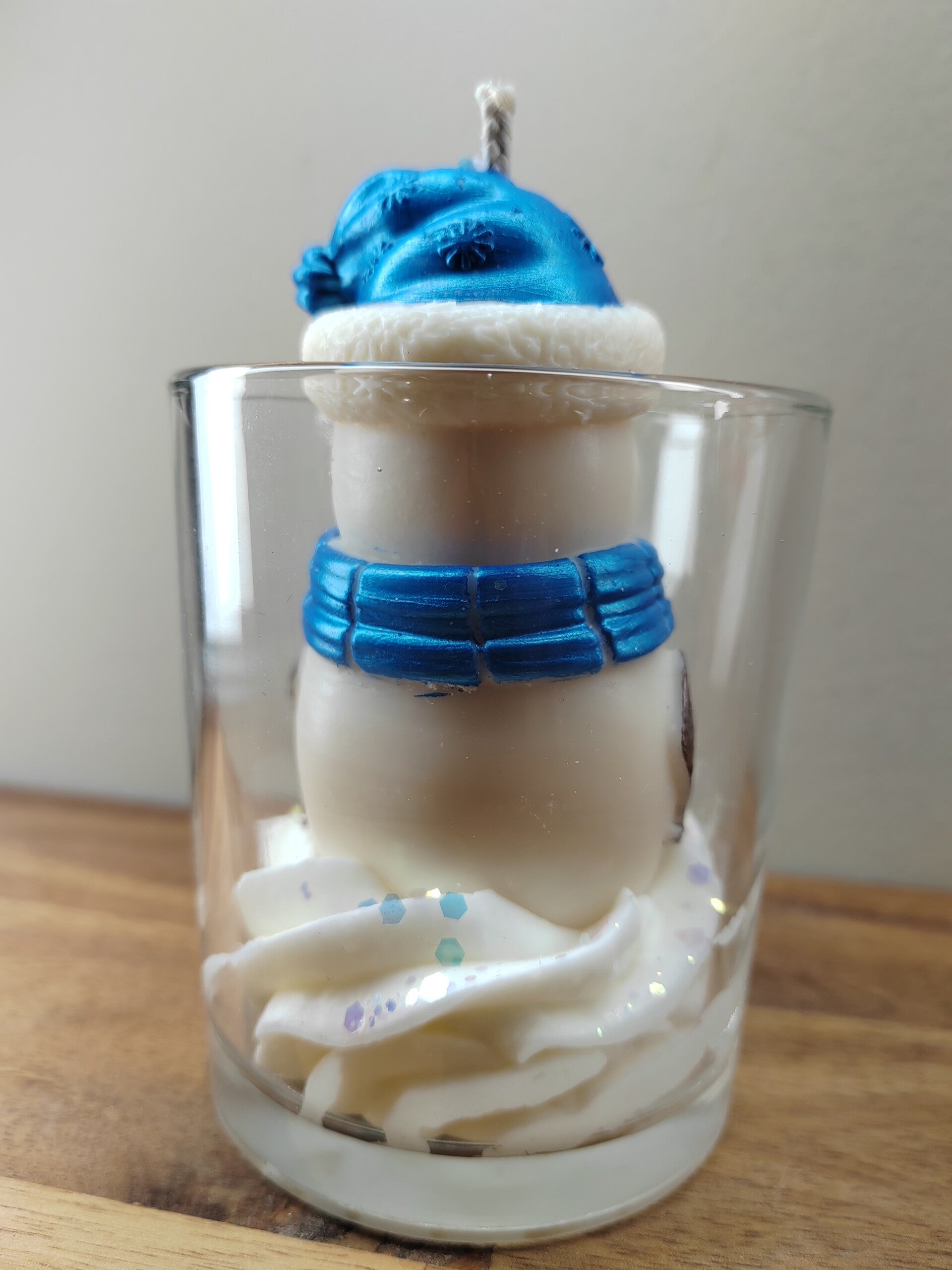 Plongez dans la féérie des fêtes avec ma nouvelle bougie Bonhomme de neige, entièrement peinte à la main à l’atelier.
